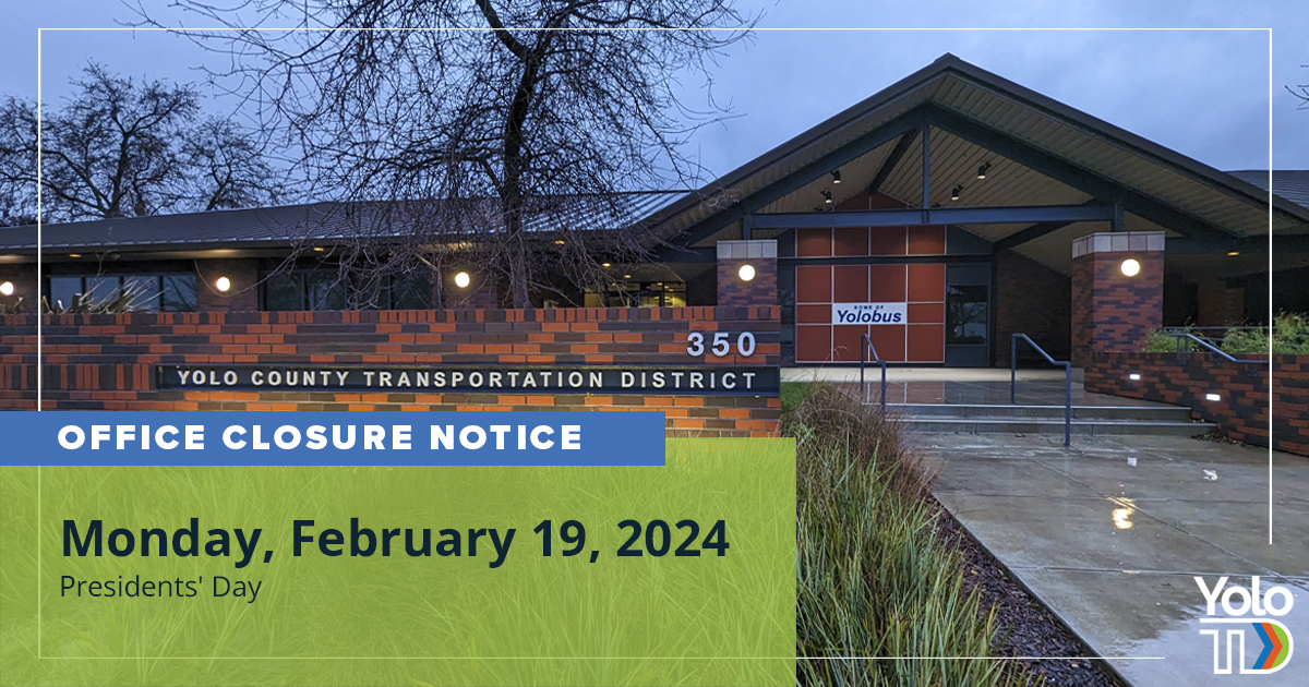 The YoloTD office will be closed on Monday, February 19, 2024 for the Presidents’ Day holiday. Regular office hours will resume on Tuesday, February 20, 2024.
