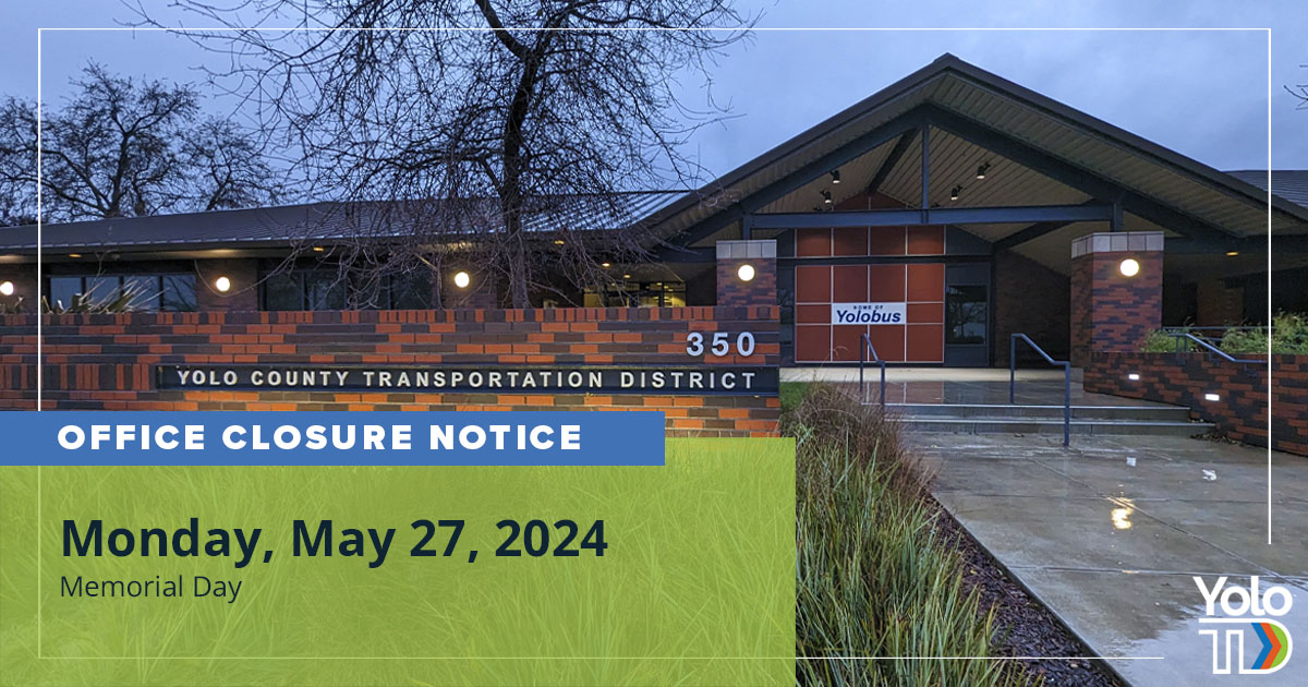 Mon, May 27 | YoloTD Office Closure & Yolobus Limited Service