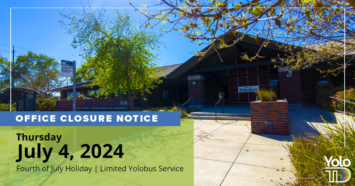 Thu, Jul 4 | YoloTD Office Closure & Yolobus Limited Service The YoloTD office will …